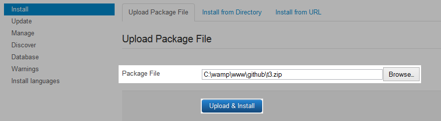 你可以選擇要安裝的軟件包(套餐包括:T3空白模板和T3框架或安裝一個插件)。該過程包括以下步驟: