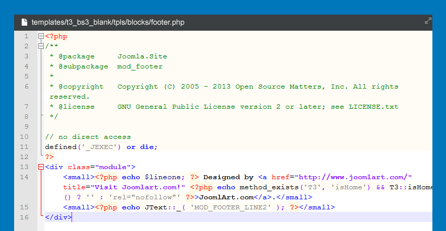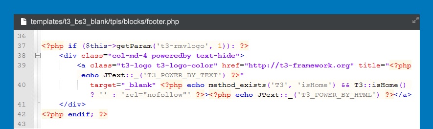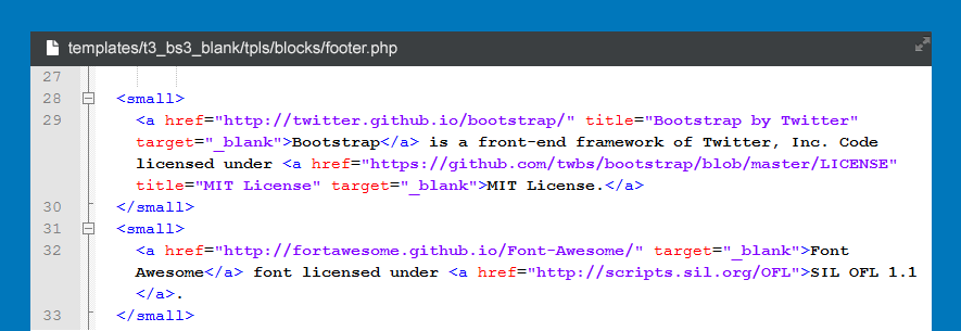 在你的網站上添加這個按鈕,打開的文件templates/t3_bs3_blank/tpls/blocks/footer.php然后將下面的代碼添加到文件。