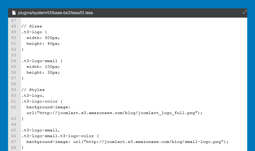 打開templates/t3_bs3_blank/less/style.less然后添加樣式規則: