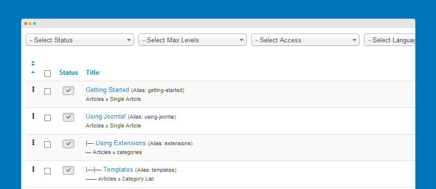 T3框架允許你為Megamenu創建的多個實例。在寫這篇文章,我們將創建主菜單和網站頂部菜單megamenu。