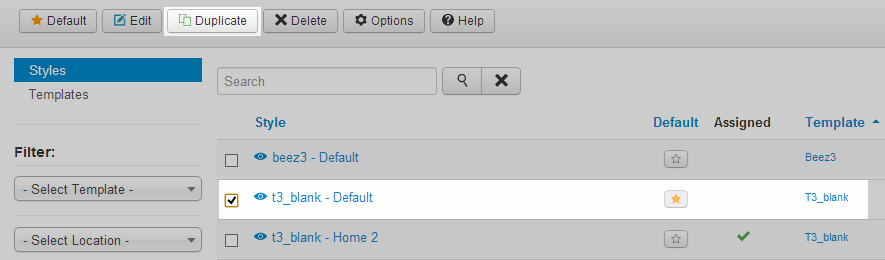 轉到“擴展”模板管理器,然后復制默認模板樣式。