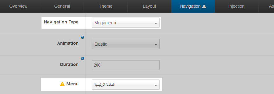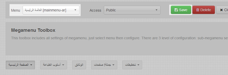 打開megamenu設置面板,然后確保你選擇阿拉伯語的右鍵菜單-主菜單。