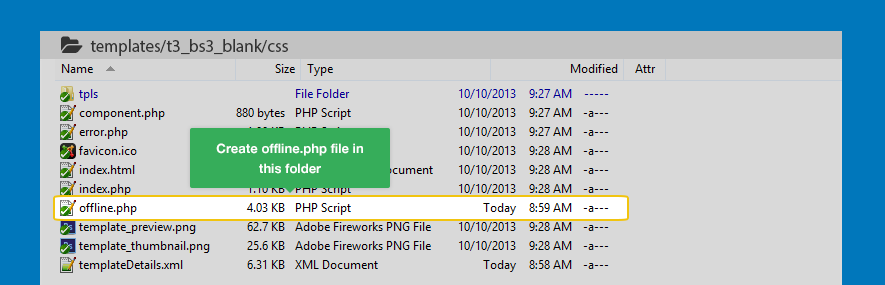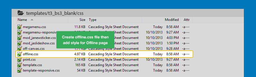 在每個主題的CSS文件的脫機頁位于templates/t3_bs3_blank/css/themes/theme_name/