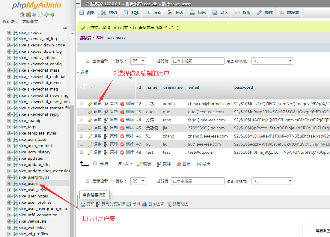 2.在數(shù)據(jù)庫的左側找出并點擊xxx_user表
