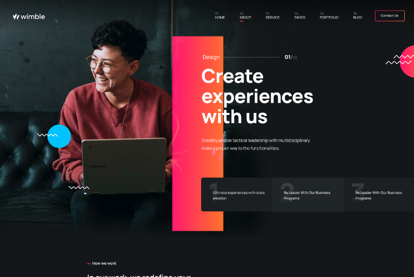 如果您知道要尋找什么,為您的企業選擇合適的模板并不難。對于商業和企業網站,請選擇一個模板,該模板將提供專業外觀以及核心功能,例如優雅地展示您的產品和服務、直觀的聯系表格、社交媒體集成、迷人的關于頁面,您可以在其中突出您的優勢和目標等。僅舉幾例,像Wimble、Floox和Revibe這樣的模板是任何機構和公司網站的絕佳選擇。