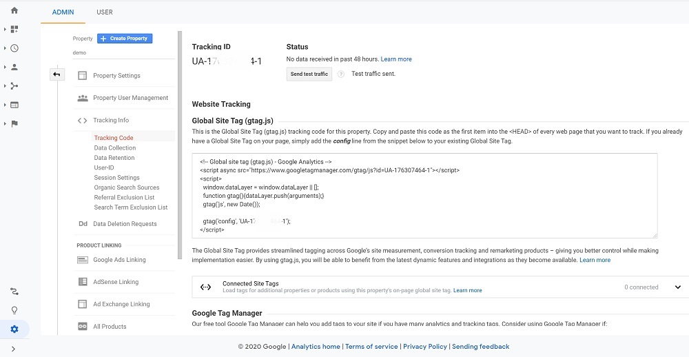 在下一個屏幕上,您將看到一個 Google Analytics 跟蹤代碼。現在剩下要做的就是將它安裝在您的 Joomla 網站上。