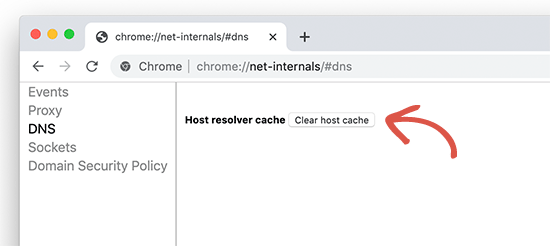 這將加載Chrome的網(wǎng)絡(luò)內(nèi)部設(shè)置頁面。在這里,您需要單擊“清除主機緩存”按鈕,然后Chrome將清除其DNS緩存。