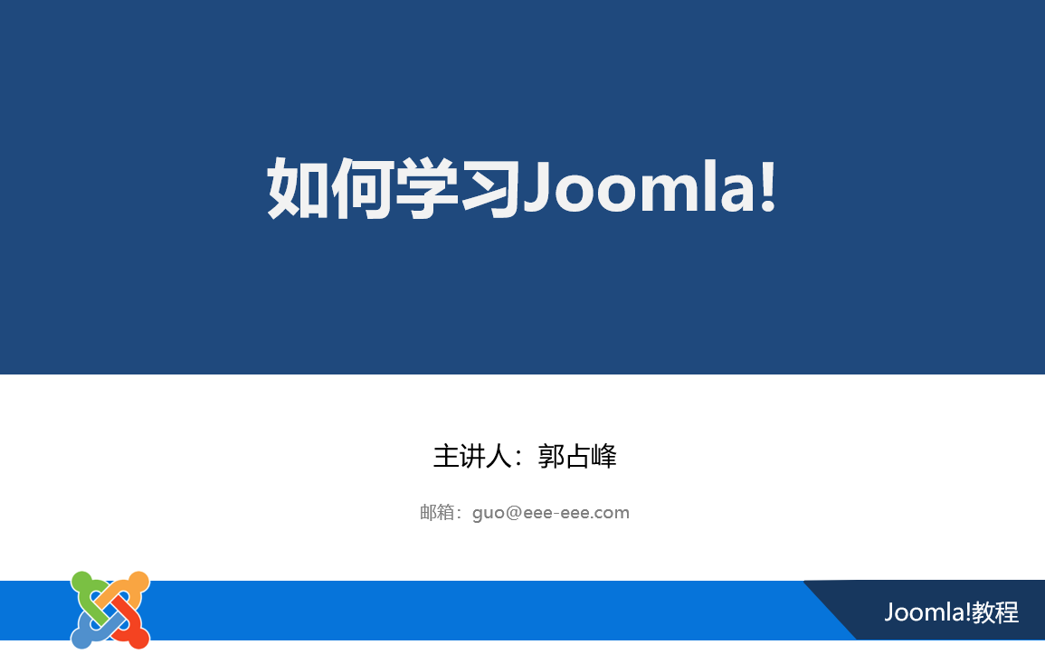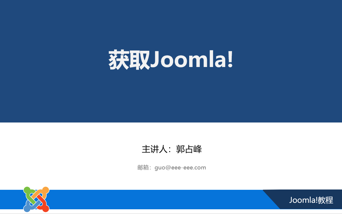第一章,為選讀部分,適用于首次接觸Joomla的初學者。通過本階段課程可以對Joomla有初步了解,并且介紹了Joomla的獲取及安裝。作為已經安裝過Joomla的用戶可以略過此內容,進入其他課程學習。
